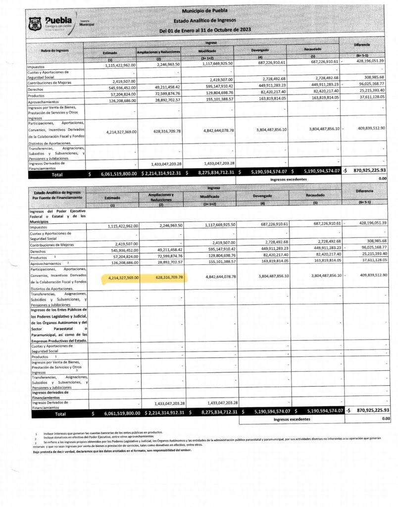 Desde el año pasado, CAPITAL exhibió documentos oficiales de la administración panista que demuestran que el Municipio recibió, tan sólo en 2023, 628 millones 316 mil 709 pesos adicionales del gobierno Federal.