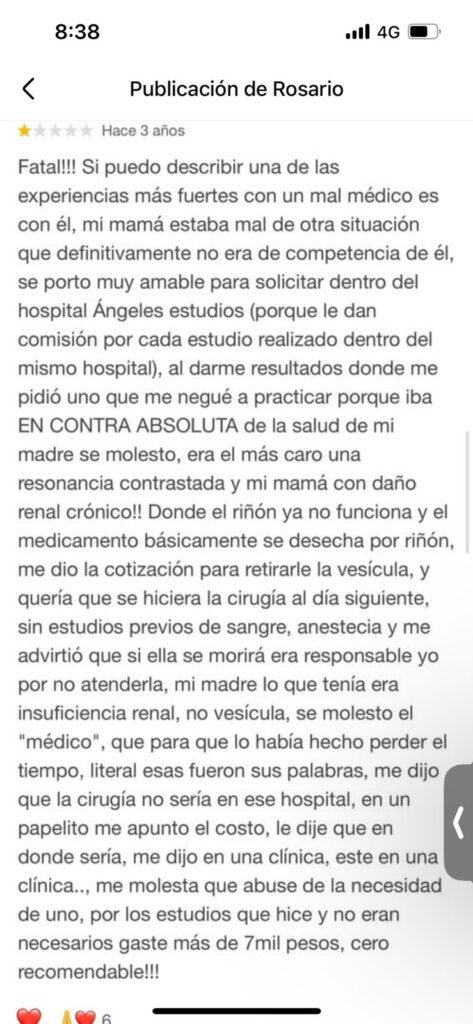 Una fichita, el médico golpeador del Hospital Ángeles
