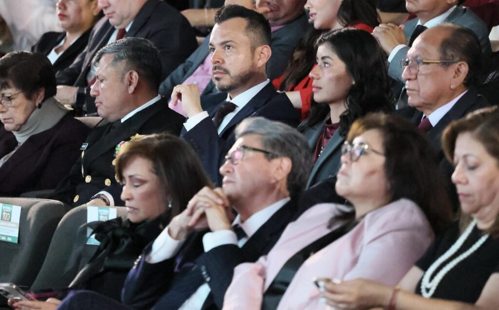 José Luis García Parra: El coordinador del gabinete se presentó con un traje azul marino de corte impecable, acompañado de una corbata oscura que aportaba un toque de modernidad.