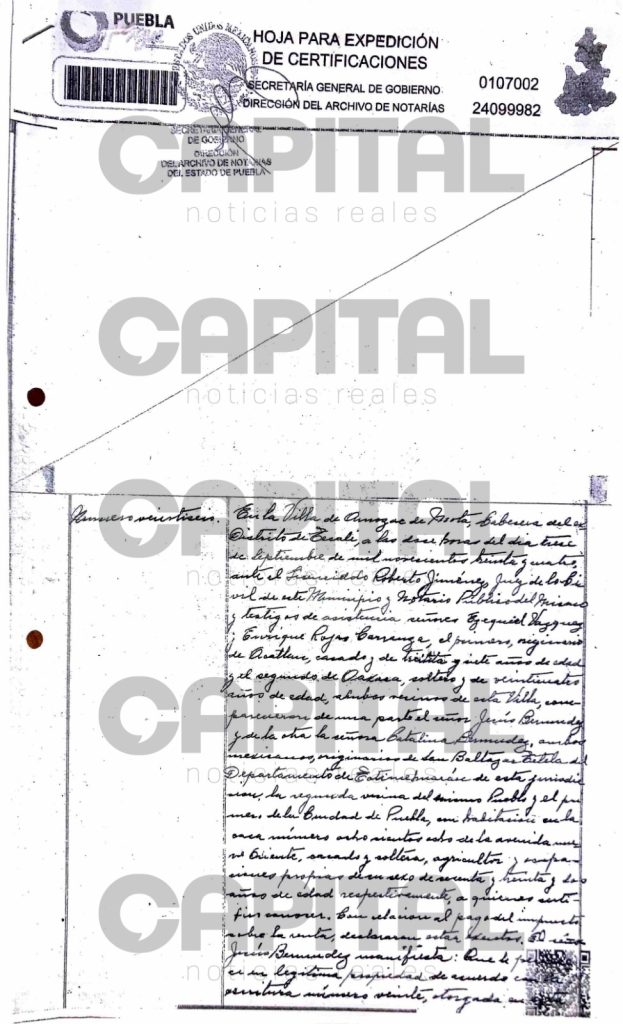La nueva sede de la BUAP comenzará a funcionar en la primera semana de agosto y espera a cuatro mil 437 estudiantes de nuevo ingreso, pero los terrenos donde se edifica son propiedad de la familia Jiménez Bermúdez, según consta en el título de propiedad en poder de CAPITAL con fecha del 13 de septiembre de 1934 y fueron “comprados” durante el rectorado de Alfonso Esparza Ortiz, acusado de desviar 671.4 millones de pesos de la Universidad a través de prestanombres, según consta en la carpeta de investigación 028/2020/UEIORPI.