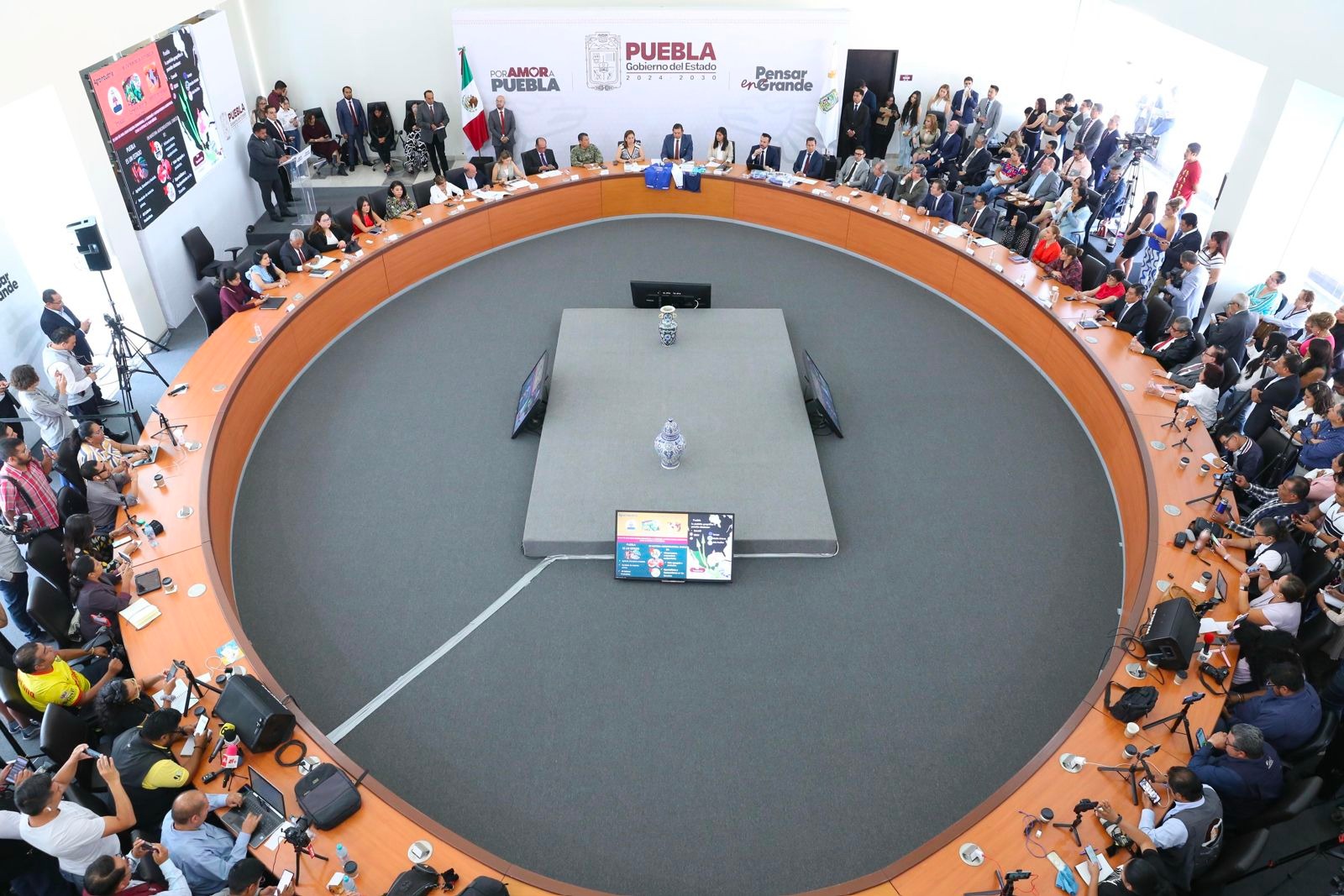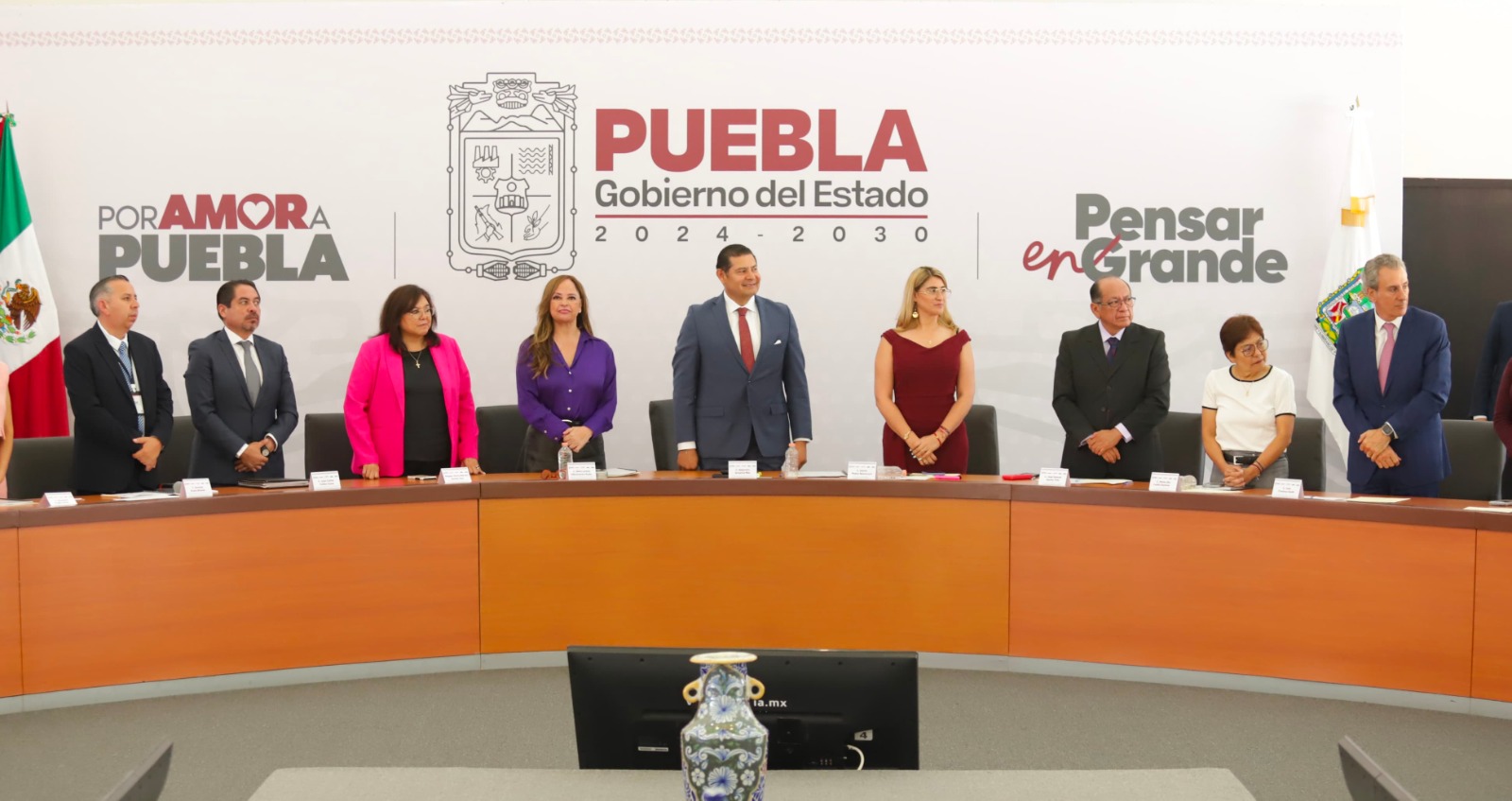 El gobernador de Puebla, Alejandro Armenta, en compañía de la secretaria ejecutiva del Sistema Nacional de Protección Integral de Niñas, Niños y ...