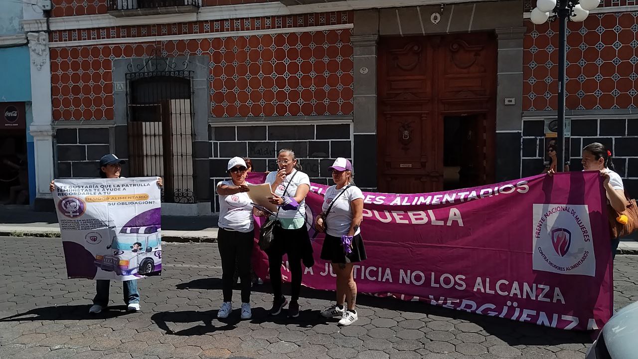 Integrantes del Frente Nacional contra deudores alimentarios en Puebla realizaron una protesta en la sede del PRI municipal, localizada en la cal...